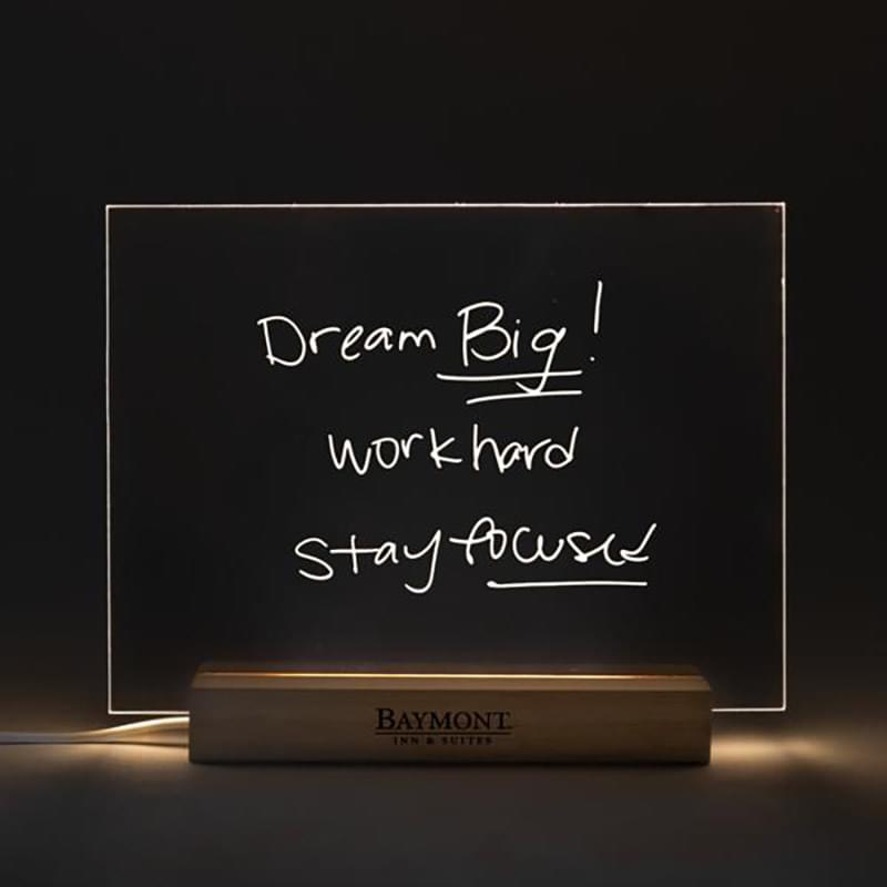 Bright ideas deserve the spotlight—literally. The Enlighten Light Up Message Board is your glowing canvas for reminders, doodles, and late-night sparks of genius. With a sleek acrylic design illuminated by LED backlighting, every note shines like it's meant for center stage. The included white liquid chalk pen wipes clean so your creativity never runs out of space, while the USB to Type-C cable keeps your brilliance fully charged. From your desk to your nightstand, this board turns everyday messages into enlightened moments.