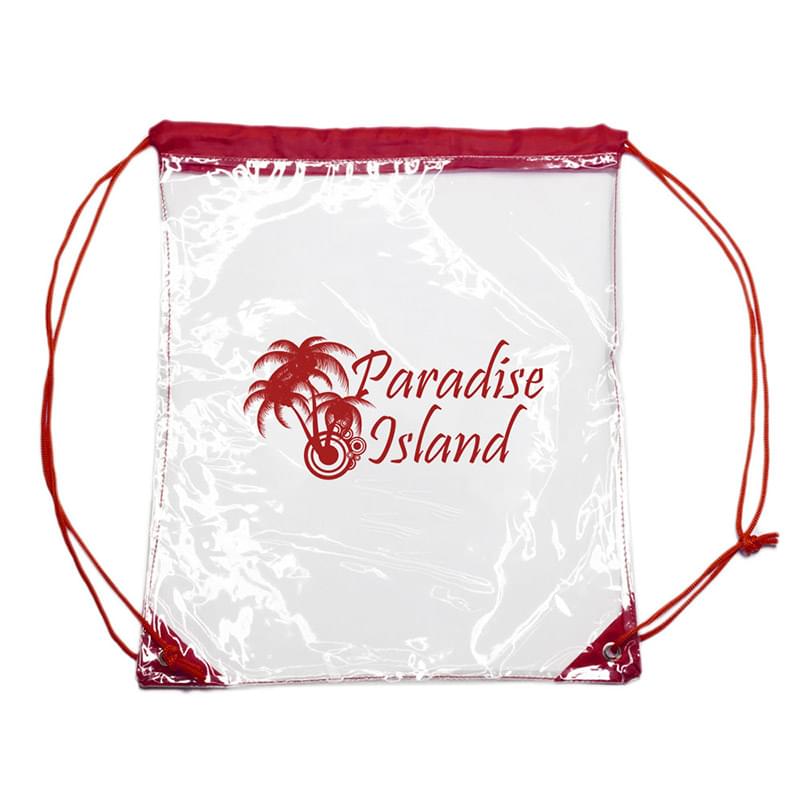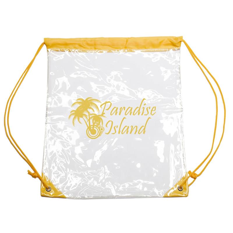 Give your customers a reason to pack you with them on their next great adventure. These 14"W x 17"H plastic drawstring bags are clear backpacks, which feature a variety of colored straps and can showcase a one-color company name, logo or advertising message on the 9"W x 9"H imprint area.. Whether it's hiking in the mountains, taking in a ballgame or strolling on the boardwalk, your business will be there. Pick up this product today!