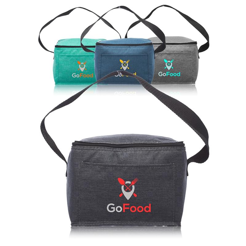 This insulated cooler lunch bag will pack some punch into your next promotion! Made from 150DPU polyester, this heathered fabric bag features heat sealed and leak-resistant PEVA lining, a front pocket for extra storage and a wraparound zippered closure that gives you full access to your lunch. It can fit up to 6 cans of beverages. Customize each one with an imprinted message or logo of your choosing. An excellent product for school lunches, camping trips, sleepovers and everyday use in the office!