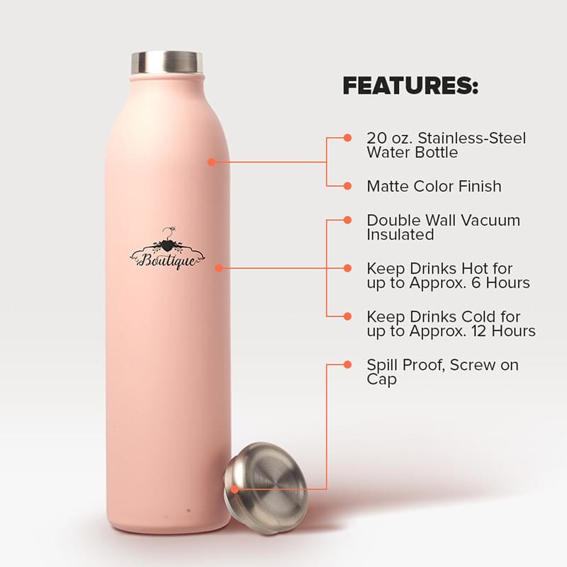 These water bottles are perfect for any type of business that wants to be remembered for a long period of time! Constructed of stainless steel, these bottles feature a capacity of 20 ounces, a spill-proof, screw-on cap and double wall vacuum insulation, tested to keep drinks hot for appx. 6 hours and cold for up to 12 hours. Choose from an assortment of stylish colors and customize each bottle with a one-color, one or two location imprint to showcase a brand name, logo or other message. Great for fitness centers, gym promotions, fundraising events, company giveaways and much more!