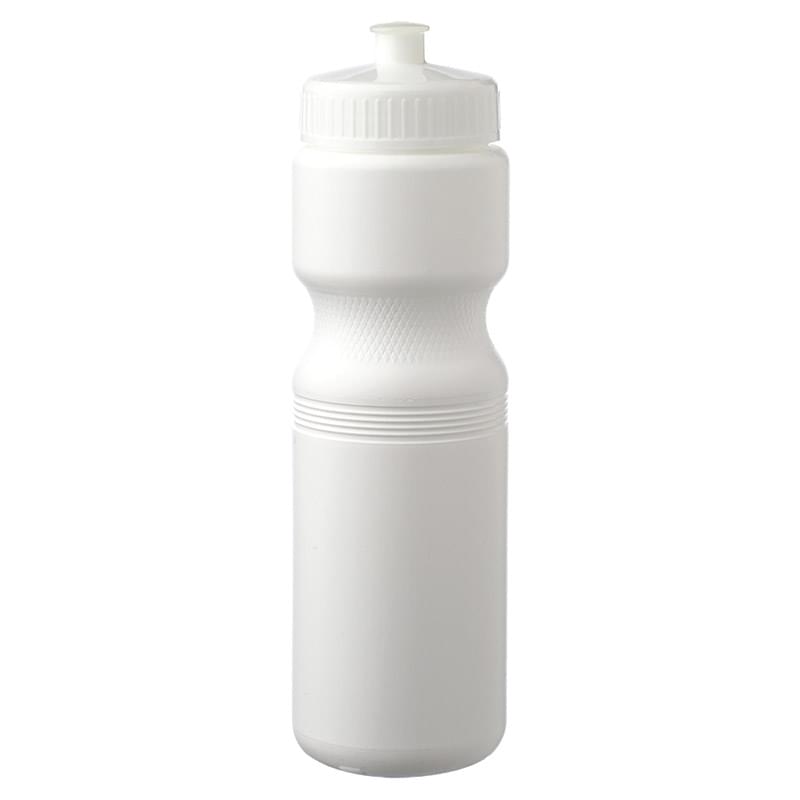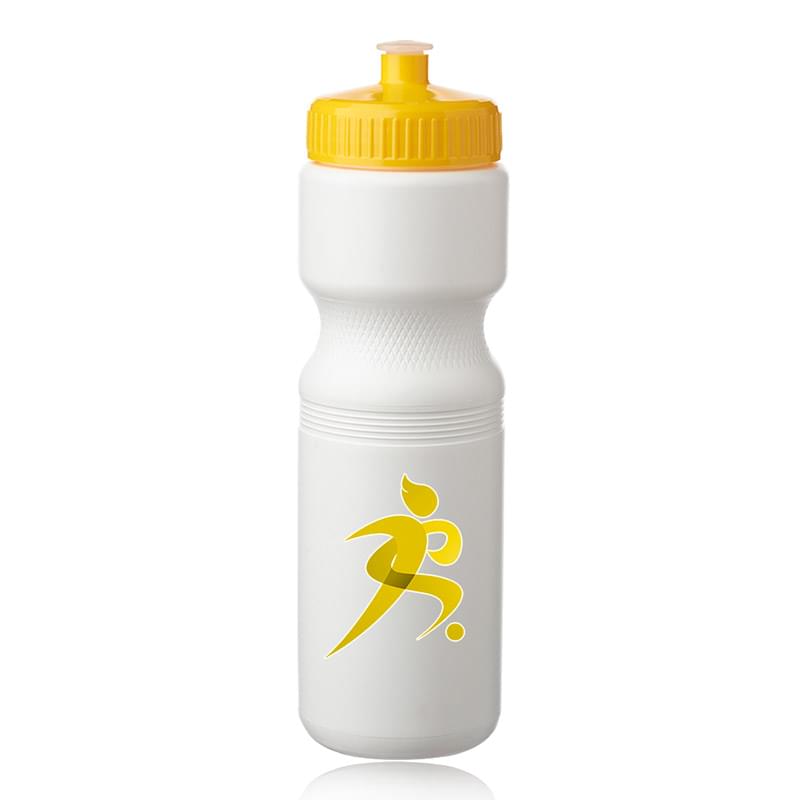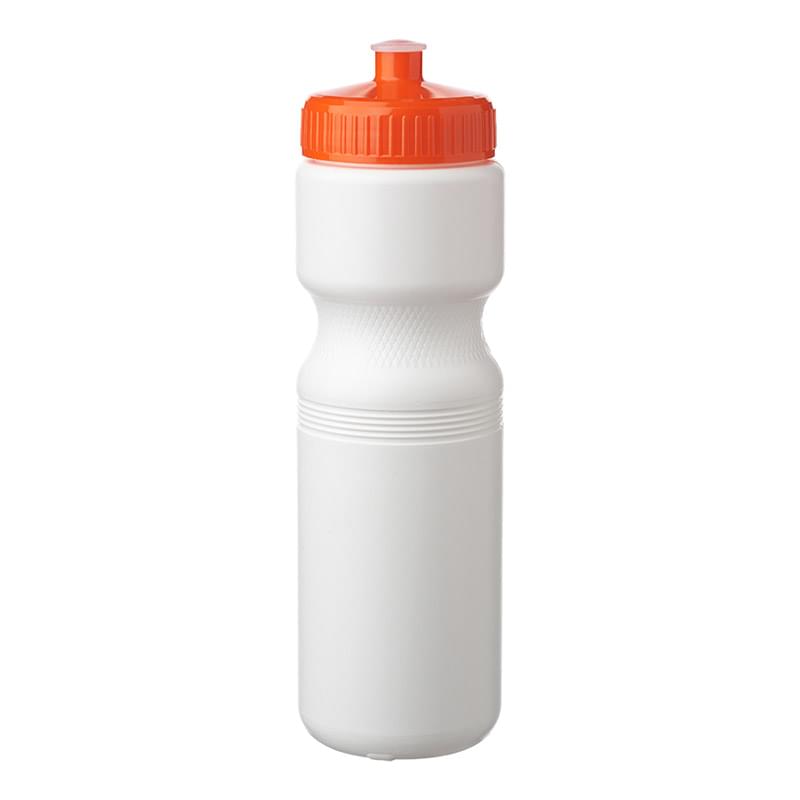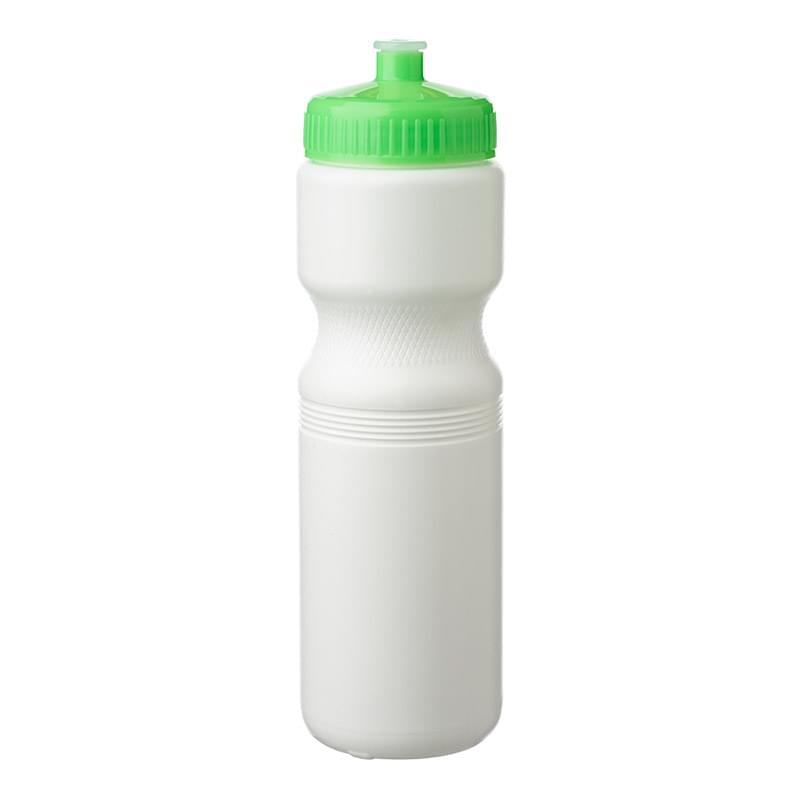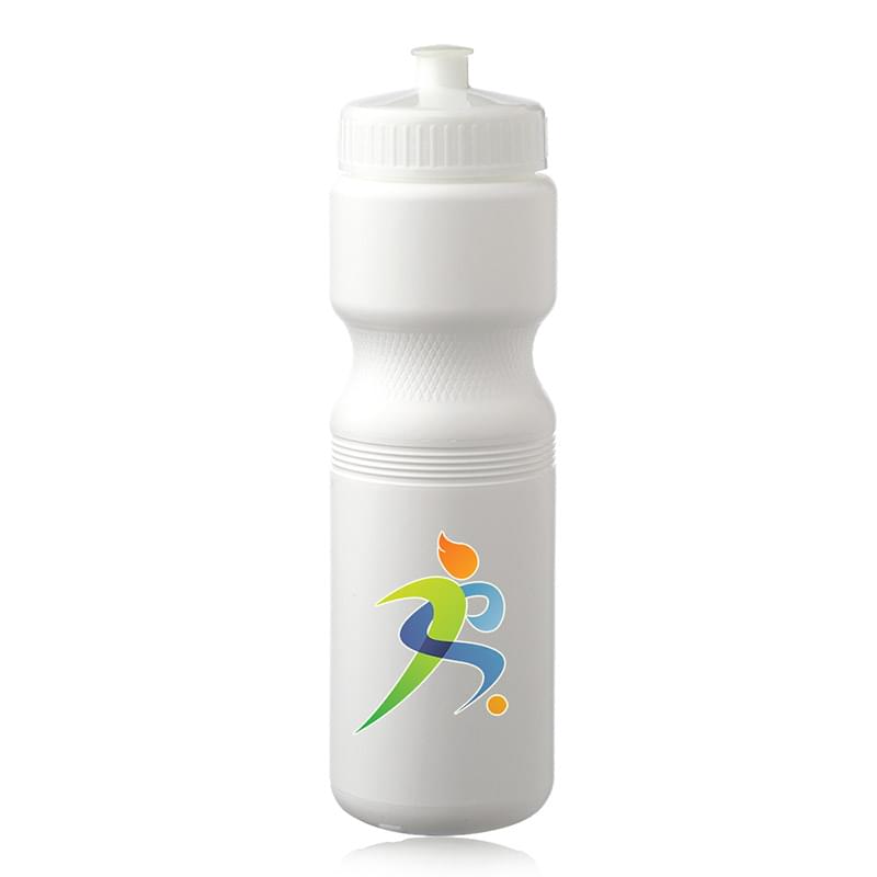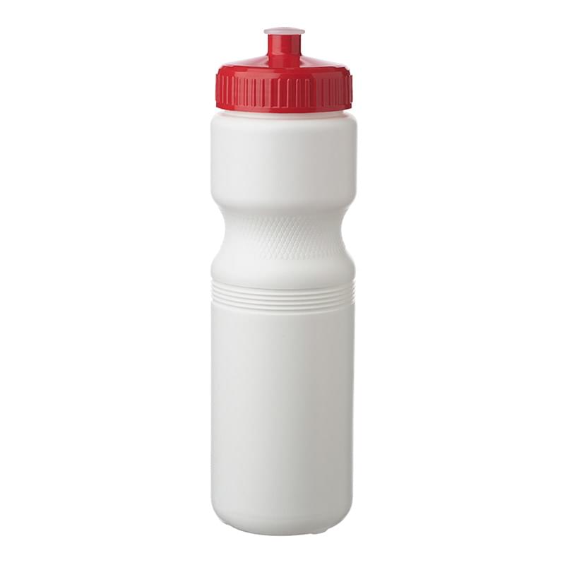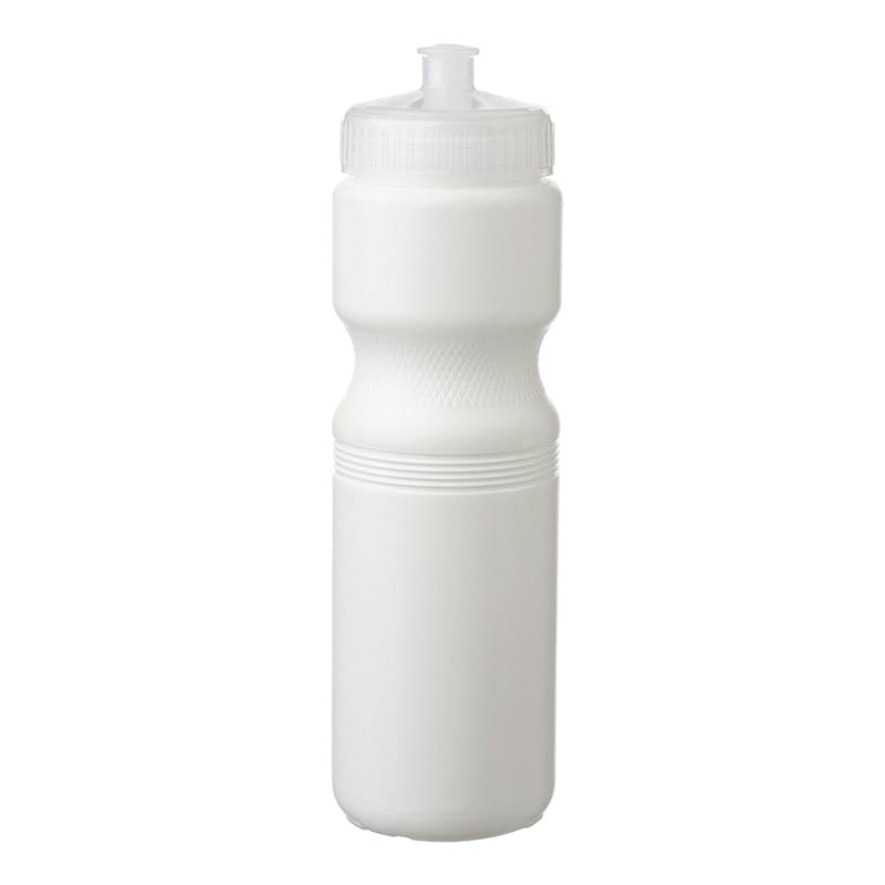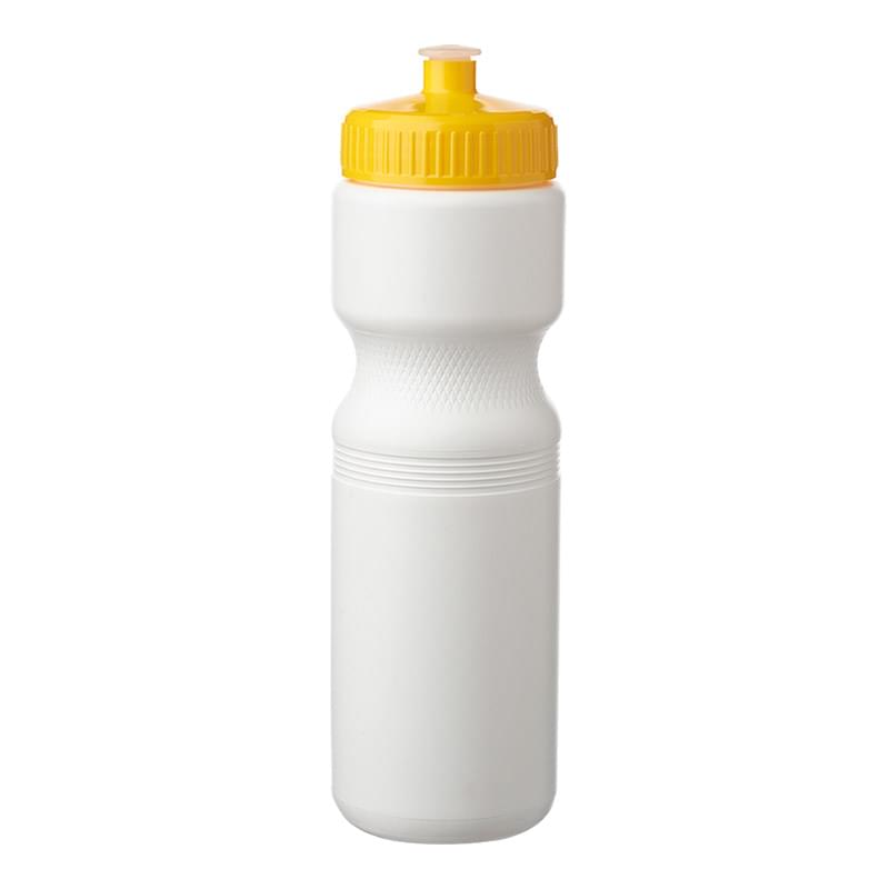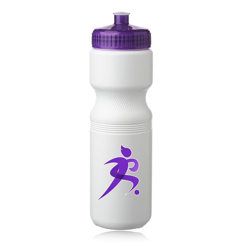 Put a cap on your current campaign with this 28 oz. plastic water bottle! With an overall size of 9.8" x 2.8" x 2.25" brim, this bottle and features a convenient push cap for easy use. With different trim color options available, your company logo or design is bound to stand out on this white water bottle. Ideal for gyms, sporting events and athletic promotions, make this bottle a part of your next marketing campaign and watch your brand travel further!