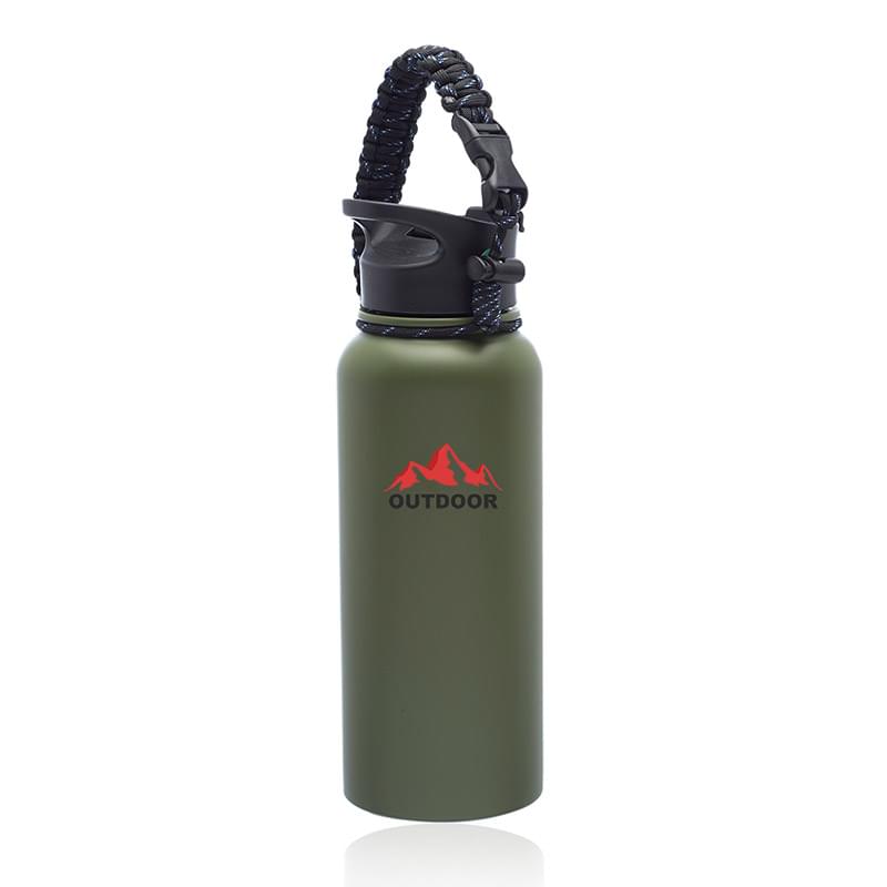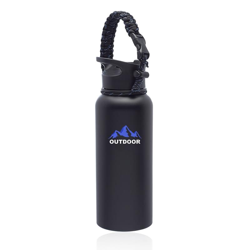 Quench their thirst for style and refreshment with this customizable water bottle! Measuring 3.5"W x 10.5"H, this bottle is constructed from stainless steel and features a 34 ounce capacity to hold your favorite beverages. It also has a plastic flip lid with handle, carrying strap assembled on the top and double wall vacuum insulation to keep drinks at optimal temperatures. Ideal for promotional use, customize each one with an imprinted company name, logo or marketing message for brand exposure with every sip!