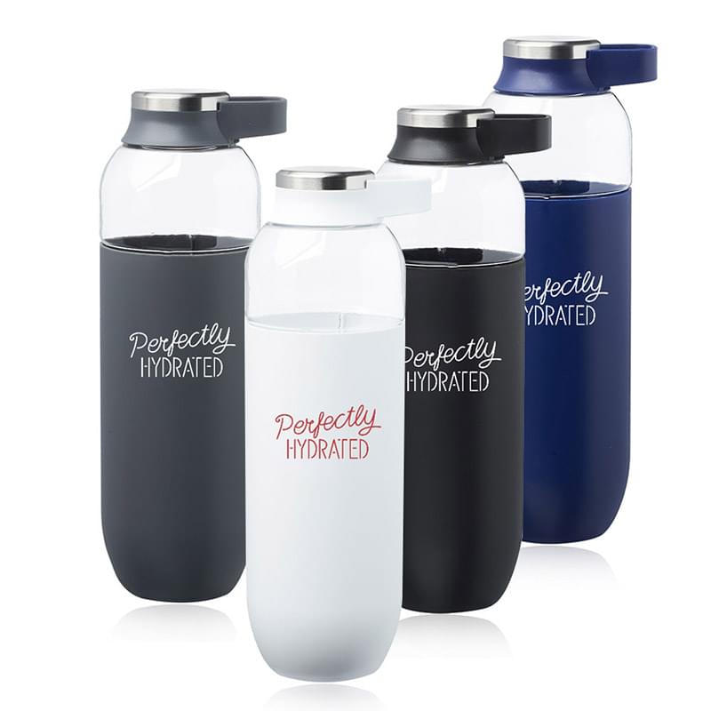 Make this 27 oz. Strike Tritan plastic water bottle with carrier handle a part of your next promotion to draw more people to your place of business! It features single-wall construction with an easy carry loop handle and twist-off cap. This has a wide mouth for easy filling and easy cleaning, and is shatter proof and BPA free. This measures 2" W x 8.5" H and features a lid that matches color bottle wrap. Enhance your marketing campaign with this great product!
