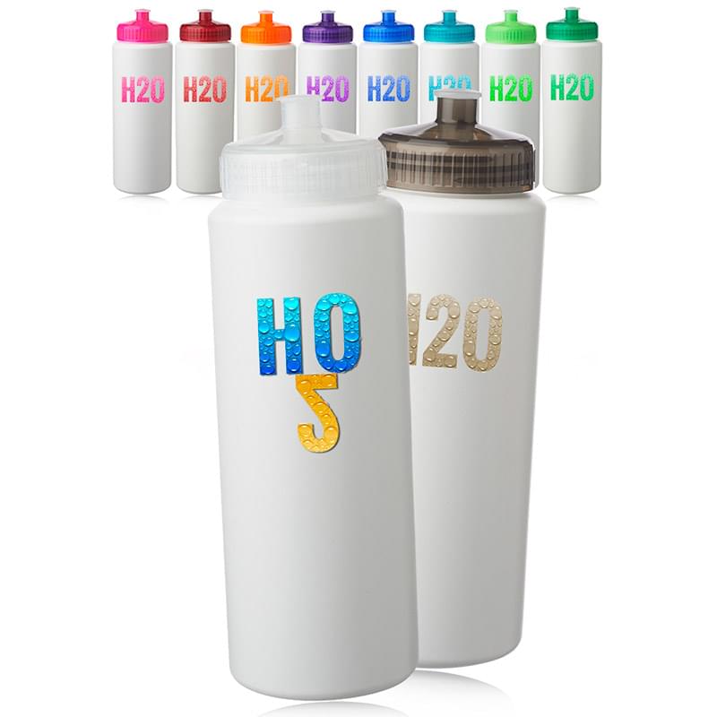 Create a culture of excitement around your business when you give out this sport water bottle! It's made of BPA-free, lead-free, HDPE plastic material, holds up to 32 oz. of liquid, and features a push-pull lid. This is made in the USA, features a 63 mm neck, and is the original straight wall bottle. This is great to give out at the next tradeshow or to new members at the gym. Add your company name or logo with one of our imprint methods and start a new successful promotion!