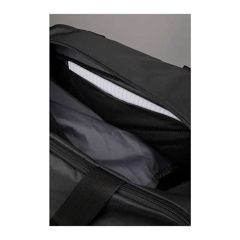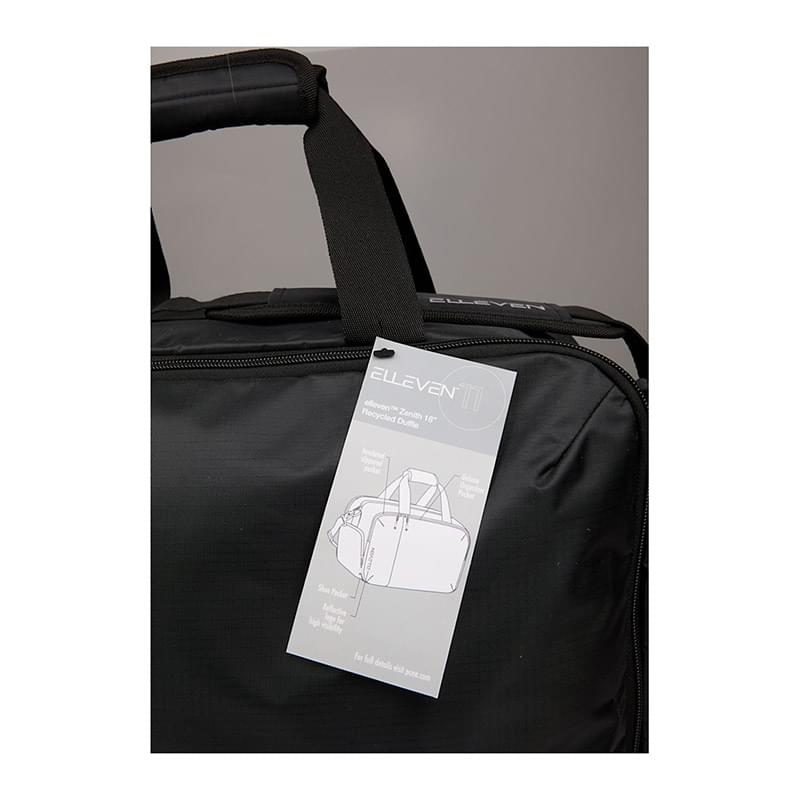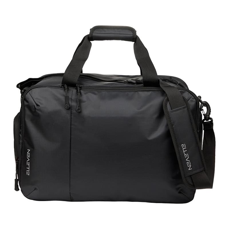 The Elleven Zenith Duffle is the ultimate travel companion, designed to keep your essentials secure and accessible. The front features a larger pocket with organization inside, along with a smaller pocket on the left that can hold water bottles. This duffle is also a great essential with its built in shoe pocket that will keep your shoes separate from other items. Store your laptop with its padded pocket, and this bag also features a trolley sleeve. Made with recycled materials, it will keep your essentials secure and organized.