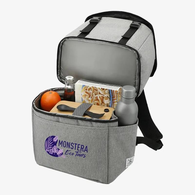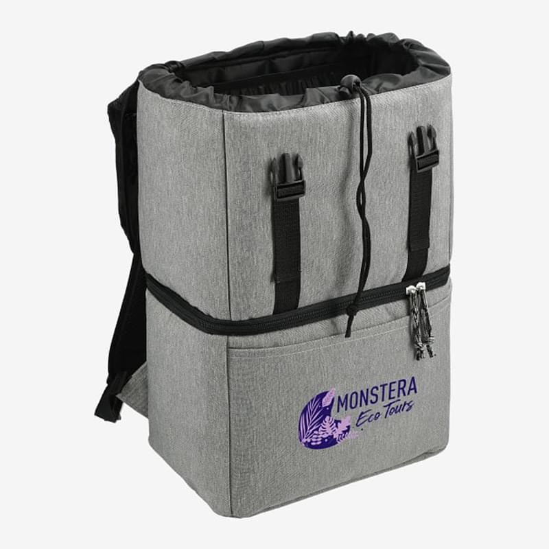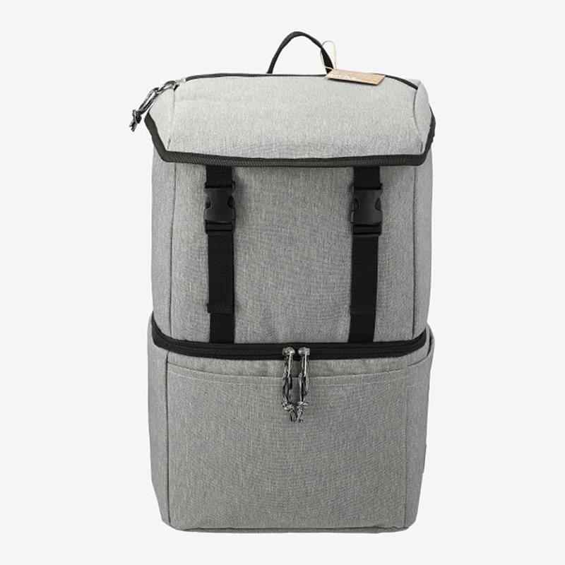Merchant & Craft - simple classics for your modern lifestyle. The Merchant & Craft Revive rPET Backpack Cooler features RPET 600d main material made from recycled plastics such as water bottles. The top section is designed to hold dry items and is not insulated. The lower section is insulated for lunches or beverages. PEVA lining. Easily identify your cooler with the interior ID label. Through a partnership with 1% For The Planet, one percent of sales of EcoSmart products will be donated to nonprofits dedicated to protecting the planet. Note: PEVA lining, webbing handle and webbing trim are not made with recycled materials.