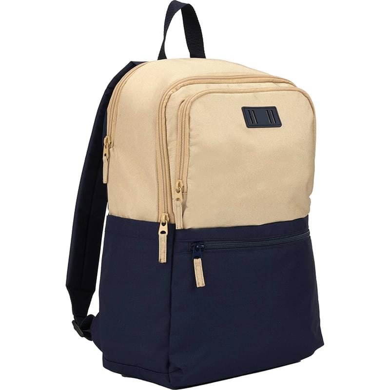 The Duo backpack is great option that incorporates neutral color-blocking details with a modern color silhouette. Made with durable 600D recycled polyester, the Duo offers all the storage and features you need for your everyday carry bag. Including a zippered compartment dedicated to keeping a laptop secure with padding on the back and bottom of the bag. The large primary zippered main compartment has the storage you need to hold daily essentials while the two zippered front pockets provide extra organization. On each side of this backpack are expandable water bottle pockets to accommodate larger water bottles. By choosing this backpack, you're making a positive impact on the environment, as one percent of sales are donated to environmental nonprofits through a partnership with 1% For The Planet.