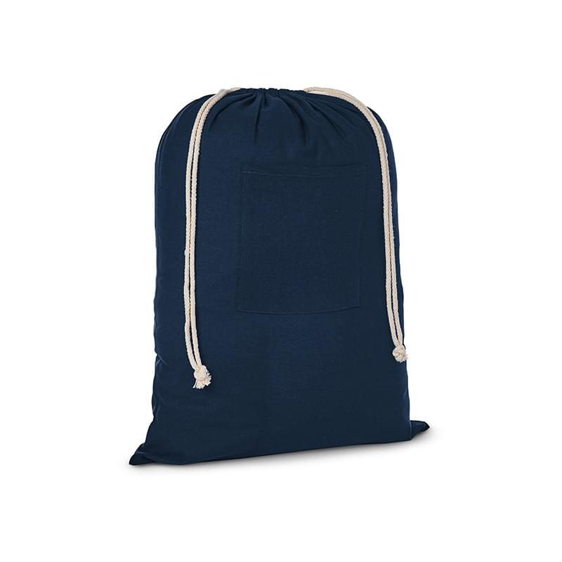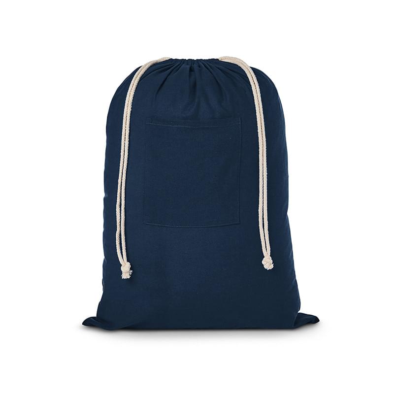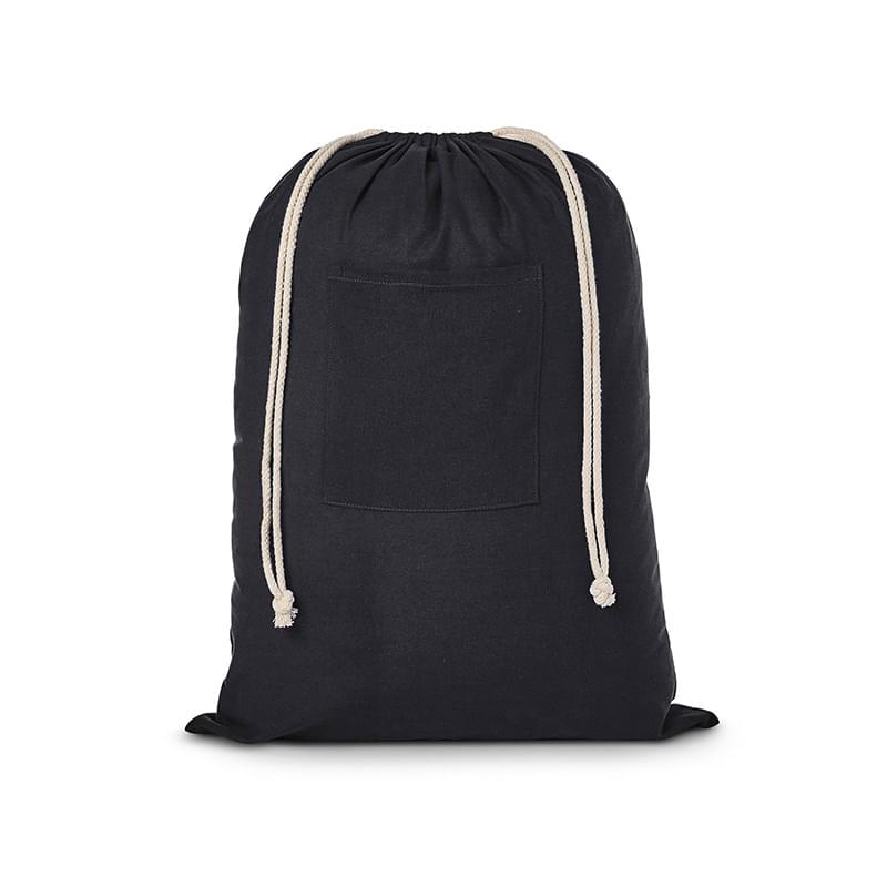 • 3.5 oz. Cotton drawstring laundry bag with front open pocket