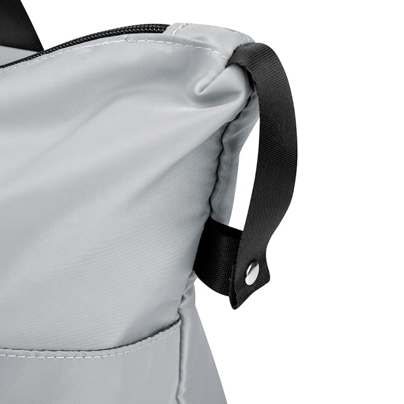 Made Of Combo: 230D rPET And Twill Polyester With PU Backing And 210D Polyester Lining | Made From Post Consumer Recycled Materials | Recycled Polyester (rPET) Is Obtained By Melting Down Existing Plastic Bottles And Other Material Sources To Create New Polyester Fiber | Backing, Straps, Zippers And Label Are Not rPET | Double Zippered Main Compartment | Front Zippered Pocket | Back Zippered Pocket | 2 Interior Slip Pockets And 1 Large Zippered Pocket In Main Compartment | Interior Zippered Pocket In Front Pocket | Trolley Strap | 2 Side Slip Pockets | Stows Into Front Zippered Pocket For Travel | Zippered Bottom Expands To Make Bag Larger | 22 ½" Straps | Snap Buttons On Both Top Edges To Fold Down | Spot Clean/Air Dry