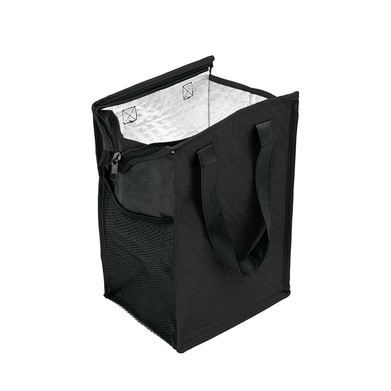 Made Of Combo: 80 Gram Non-Woven, Coated Water-Resistant Polypropylene And rPET | Made From Post Consumer Recycled Materials | Recycled Polyester (rPET) is Obtained By Melting Down Existing Plastic Bottles And Other Material Sources To Create New Polyester Fiber | Lining, Mesh, Zipper And Label Are Not rPET | Foil Laminated PE Foam Insulation | Zippered Main Compartment | Side Mesh Pocket | 19" Handles | 6 ¾" Gusset | Spot Clean/Air Dry