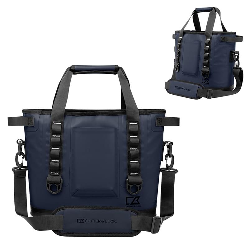 Made Of 500D PVC Tarpaulin With EVA Bottom And PE Foam Lining | Zippered Main Compartment | Front Slip Pocket | 2 Side Handles | Adjustable/Detachable Padded Shoulder Strap | Web Carrying Handles With Hook And Loop Comfort Grip | Front And Back Daisy Chains For Attaching Gear, Etc. | Signature Cutter & Buck® Lining | Cutter & Buck® Rubberized Zipper Pulls | Holds Up To 18 Cans | Spot Clean/Air Dry