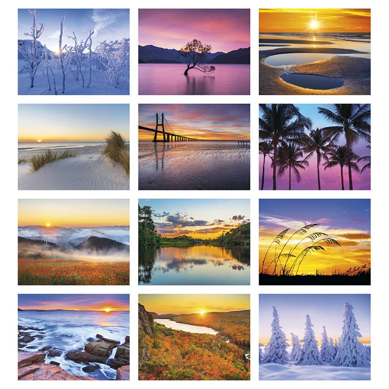 Beautiful photographs of colorful sunrises and sunsets are on display all year.Add value to your calendar with an extra sheet and/or an Insights backmount for no additional costPixaction Preview included on this product