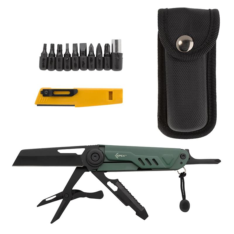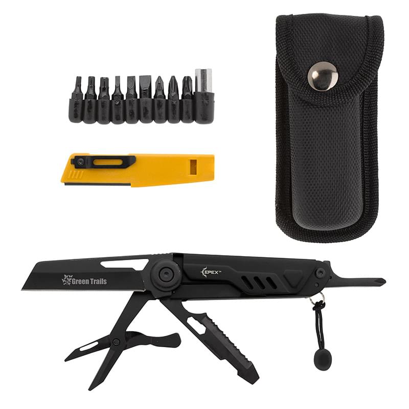 • Includes: knife, scissors, bottle opener, fish scaler, hex wrench, whistle, sharpener flint, and screwdriver with 9 additional bits