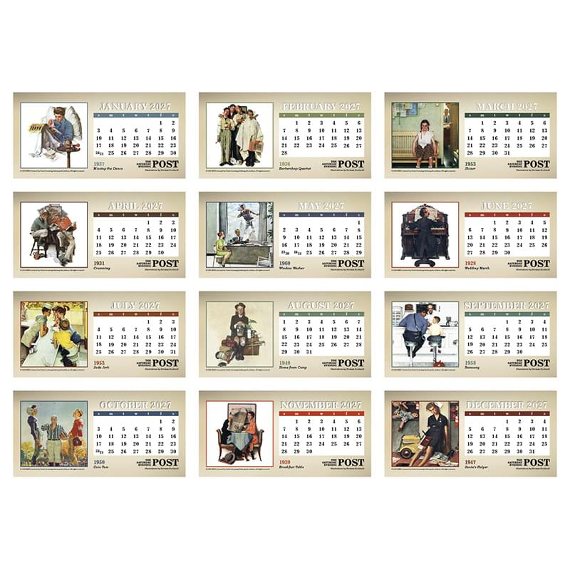 The Saturday Evening Post Illustrations by Norman Rockwell Desk. With desktop display calendars, the message is kept in front of customers every day of the year. This handsome display of American masterpieces is sure to be appreciated.Same ad message prints on both sides of the tent mount