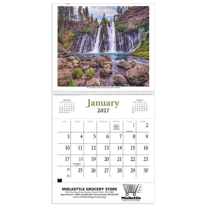 Tuck receipts and reminders in the pockets of this functional calendar while enjoying a new image of America's scenic beauty each month.