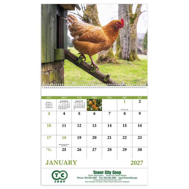 This calendar displays colorful images that portray abundant fields and quiet beauty.13-Month calendar with December month printed on backmountGloss Paper Stock with UV Coated CoverHigh-quality Imagery