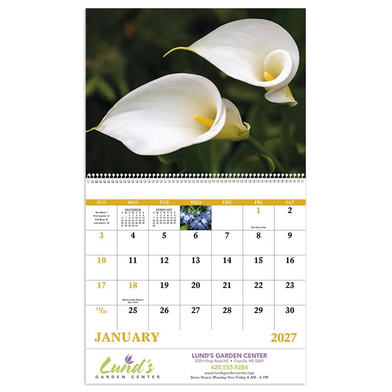 Get up-close and personal with Nature's beauties with this 13-month Flowers Calendar.