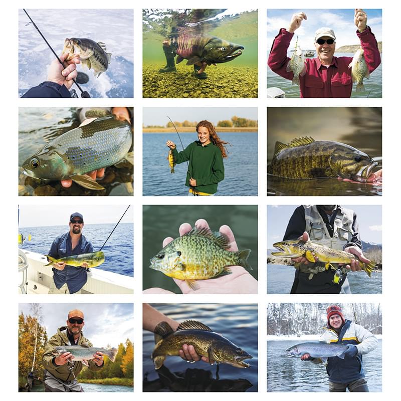 • 12-month calendar with fishing information included on the inside cover spread of calendar