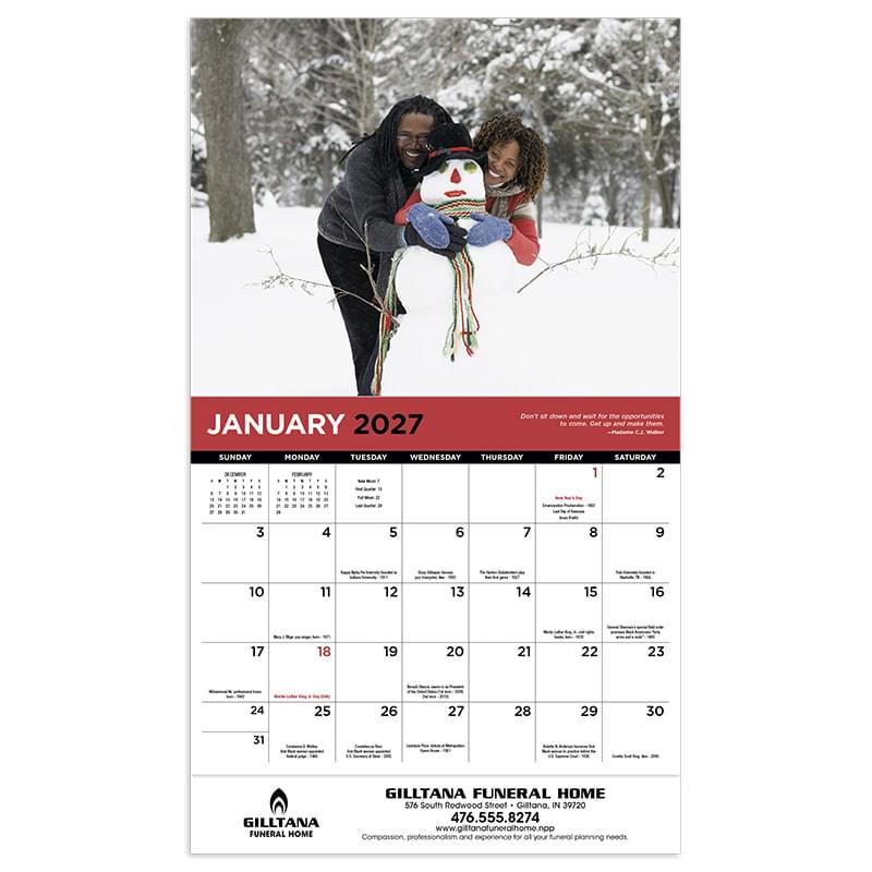 • 13-Month calendar with December month printed on the backmount