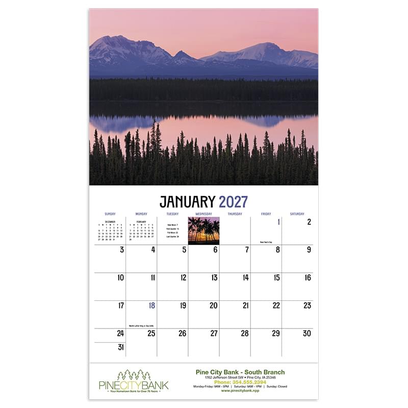 • 13-Month calendar with December month printed on the backmount