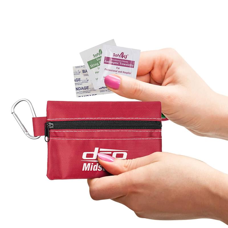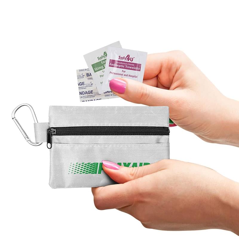 14pc First Aid Kit in Soft Zipper Pouch with Carabiner