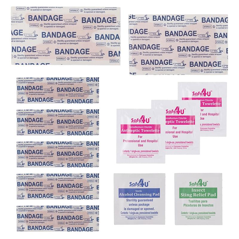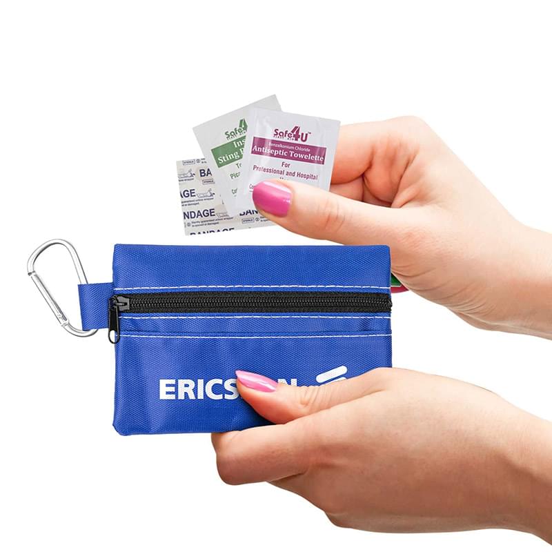This 14-piece first aid kit comes in a soft yet durable 420D Oxford cloth pouch with a nylon zipper and aluminum carabiner for easy attachment to bags or belts. The kit includes alcohol cleansing pads, antiseptic towelettes, insect sting relief pads, and a variety of bandages for quick care. Compact and lightweight, it is perfect for travel, hiking, and everyday safety.