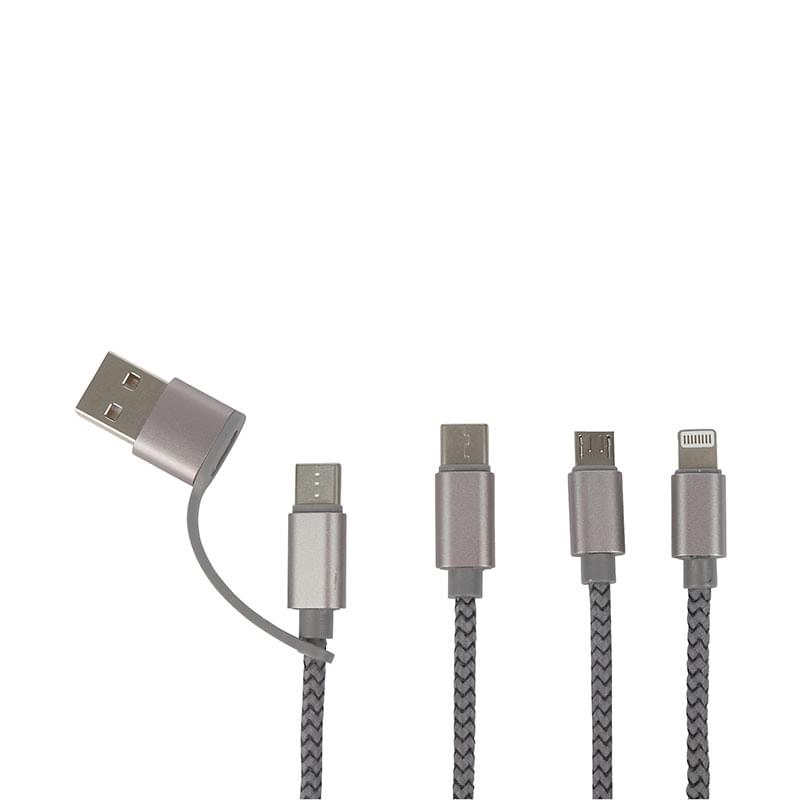 The Virgo 5-in-1 Charging Cable is a versatile and eco-friendly solution to keep your devices powered up in style. With a generous 9-foot length, this charging cable offers unparalleled flexibility and convenience, ensuring you stay connected no matter where you are. Crafted with sustainability in mind, the braided cable is made from recycled water bottles (RPET), and the aluminum connectors not only add a touch of sophistication but also enhance the durability of the cable for long-lasting use. The 5-in-1 design caters to all your charging needs, featuring USB-A / Type-C on one end and lightning, Micro USB, and Type-C connectors on the other. Stay charged and connected with the Harvey 9’ RPET charging cable set.