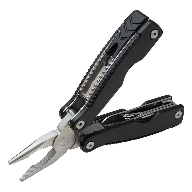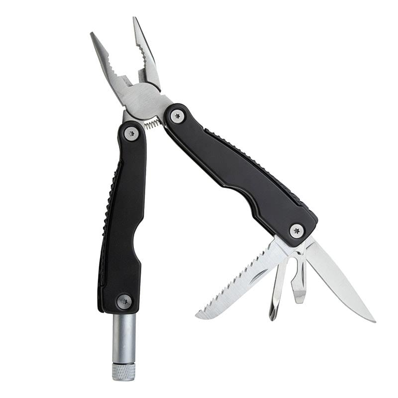 The Titus Multi-Tool is the perfect gift for your loved one who enjoys hiking, fishing, camping or backpacking and it’s also useful to keep in the house or garage for everyday use. This multi-tool is constructed with stainless steel tools and aluminum handle providing long-term durability. The tool includes spring-loaded pliers with handle grip, knife, saw, phillips and flathead screwdrivers, wire cutter, bottle opener and a LED flashlight. When the pliers are not open and in use, the remaining tools deploy from the frame exterior without having to open the pliers and still provides a secure handle grip while using the tools. The Titus comes with a nylon belt pouch for easy carrying and three mercury-free batteries are included.