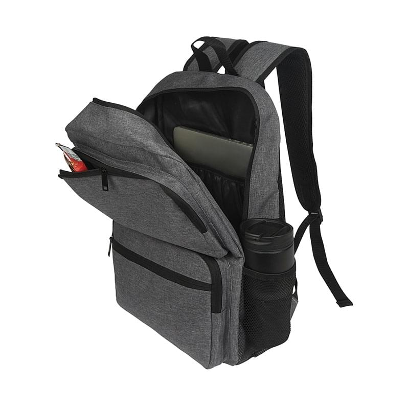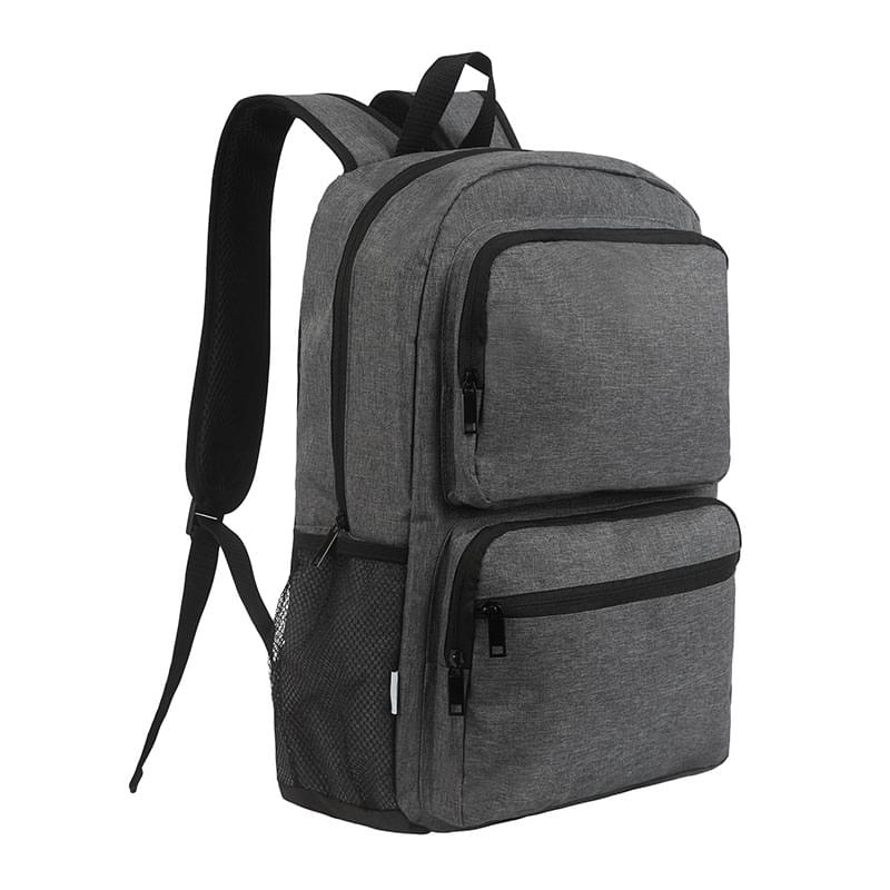 The Reed Laptop Backpack combines both sustainability and functionality for the modern user. The durable exterior material is made from recycled water bottles (RPET). It features a spacious main compartment with a dedicated padded pocket that accommodates laptops up to 15.6 inches and two side mesh pockets for water bottles or umbrellas. The front side has 3 zippered pockets for organizing smaller items and its padded shoulder straps and back panel make for a comfortable carrying experience. Whether its a quick day trip to the city or spending a day at the park, the Reed backpack is a perfect companion for any itinerary.