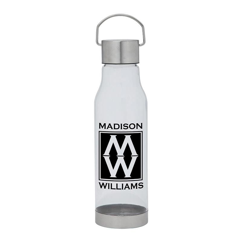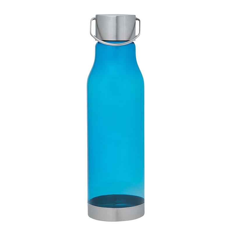 The Phoenix Water Bottle is part of the Eco Lifestyle Collection and is made from post-consumer recycled PET water bottles. It is reusable, refillable and will fit in most car cup holders. The translucent body has a slim shape for an easy grip and its screw-top lid with hinged carry handle and bottom base are made of stainless steel. The Phoenix bottle has a 20 oz. capacity and is perfect for indoor daily use or outdoor sporting events. FDA compliant and BPA Free.