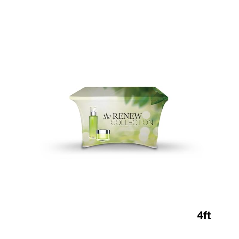 The 4' RPET Stretch DisplaySplash Table Cover is your most eco-friendly way to colorfully display your brand. Its 180g elastic polyester material is made from recycled water bottles, is fire-retardant treated, machine washable and ironable. Created for a 4’ table with dimensions 48” x 30” x 29”, it is highly elastic and has rubber feet for the table legs which form a clean tight fit around all 4 sides of your table. This table cover also comes with a PVC zippered carrying bag. Promote your brand with a vibrant full color dye sublimation. Grab this cover for your next trade show, product launch, exhibition or presentation! EQP does not apply on DisplaySplash orders.