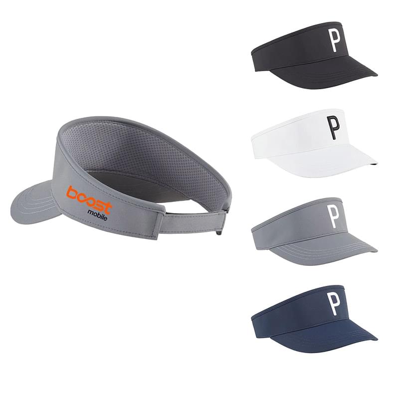 The Puma Golf Tech P Adjustable Visor is designed for performance and comfort on the golf course.