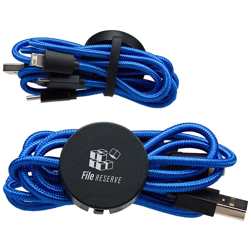 - USB-C, micro USB and 5-pin adapter for charging both Android and Apple devices - Logo lights up with laser engrave decoration when charging - Built-in strap to organize 39" long cables - Charge multi devices simultaneously - Charge devices with up to 2A