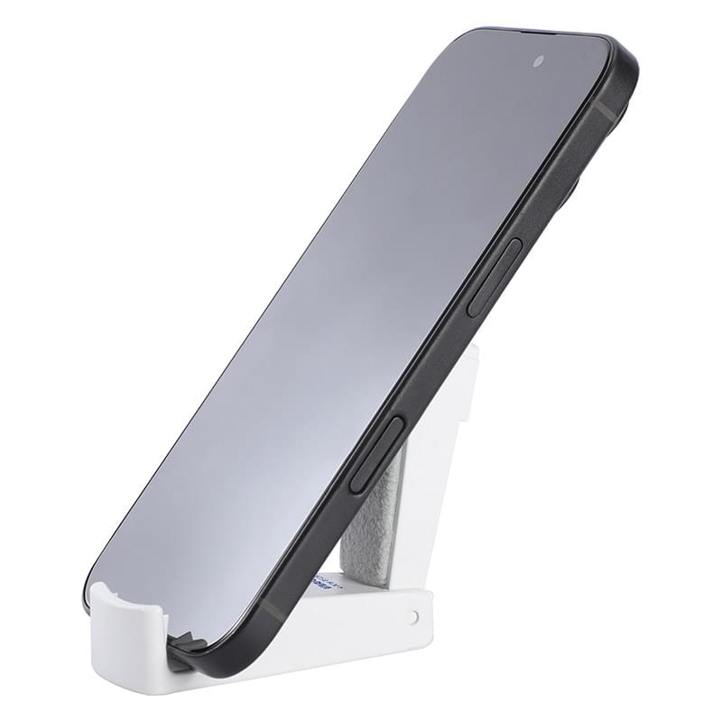 - dual-function design that works as a phone stand and screen cleaner in One compact tool - built-in microfiber Pad removes fingerprints and smudges with ease - stable stand holds most smartphones for hands-free viewing - compact and lightweight—perfect for desks, travel, or on-the-go use - Made from durable ABS plastic with soft fiber cleaning surface - ideal for tech giveaways, trade shows, and corporate promotions