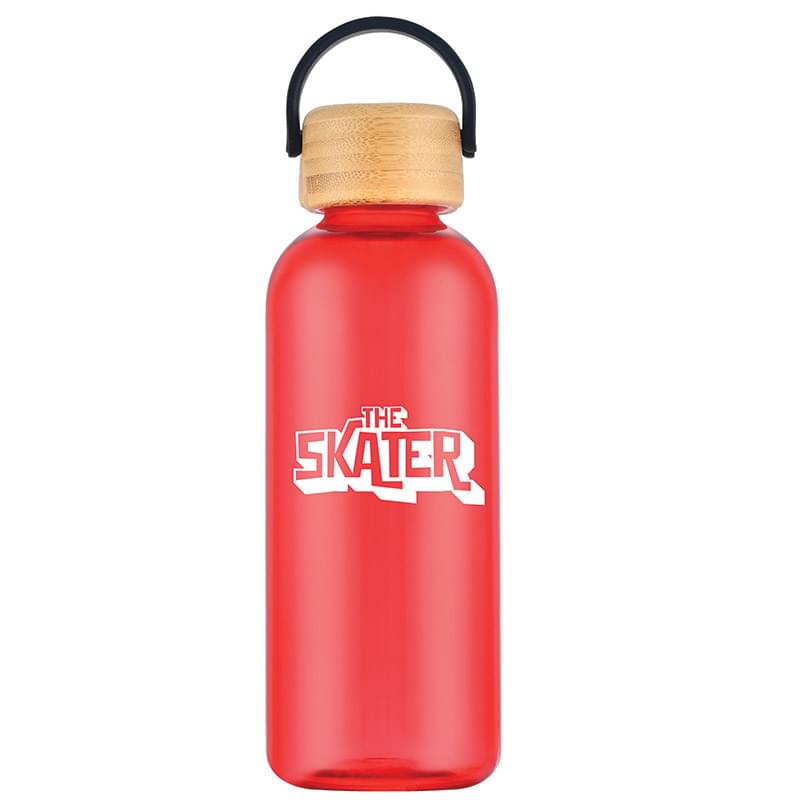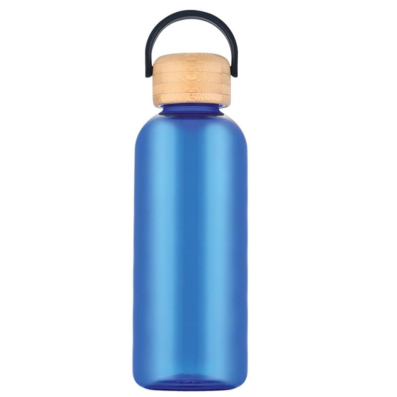 Quench your thirst while making a positive impact on the planet with our 21 oz rPET Water Bottle. This reusable bottle is made from rPET, a material created from recycled consumer plastics like single-use water bottles. Plus, its a visibly appealing bottle with its vibrant colors and natural bamboo lid with a convenient carrying loop. Hand wash recommended.